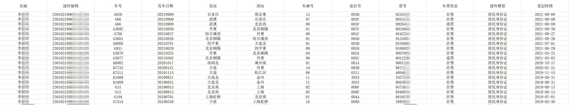 查询国内的飞机、火车记录,默认查询近6个月记录。不包含境内飞境外的航班,如果要查国际航班记录,请看下一个项目——出入境记录。